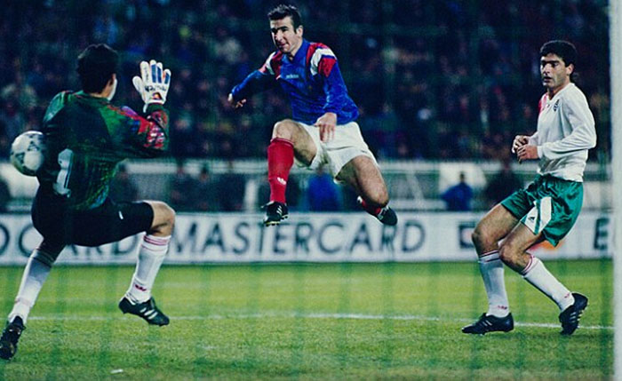 1993年,坎通纳代表法国国家队出战,迎战比利时队。 图片来源:网络
