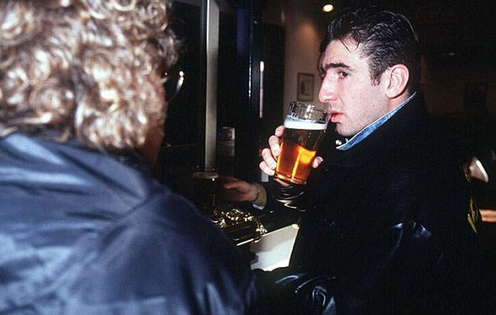 在为谢菲尔德星期三队试训期间,坎通纳在谢菲尔德当地的一家酒吧里喝酒。 图片来源:网络