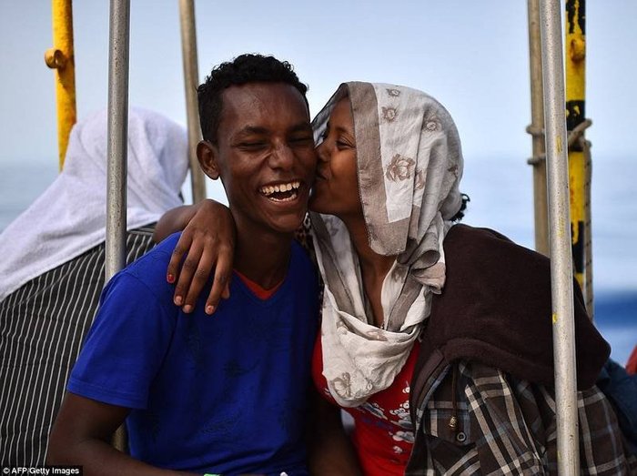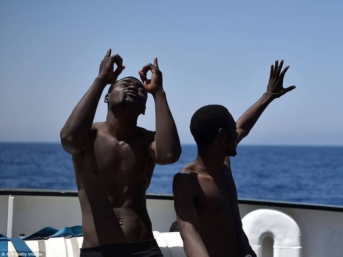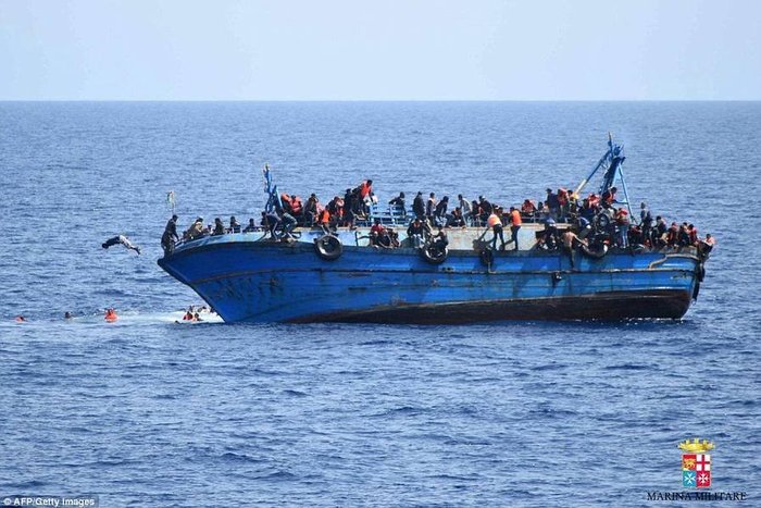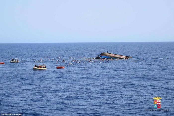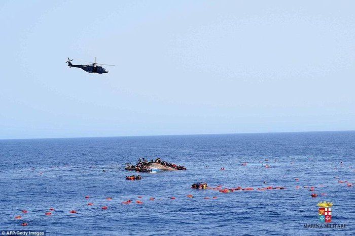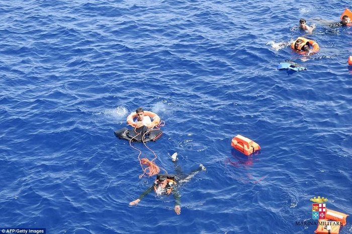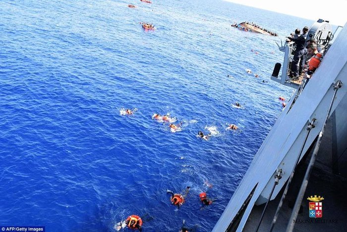 2. 在船翻的的时候,落海难民拼命游泳逃生。船在翻之后下沉,会在附近产生漩涡把落海的人“吸”入水底。据意大利方面透露,在短短的48小时内,就在地中海上救起了超6000名难民。
