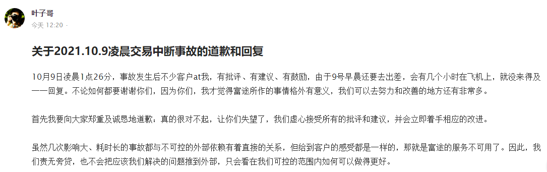 10月11日中午,富途创始人李华再发2000字长文道歉和回复,引起市场关注。李华在致歉中坦言,虚心接受所有的批评和建议,并会立即着手相应的改进。