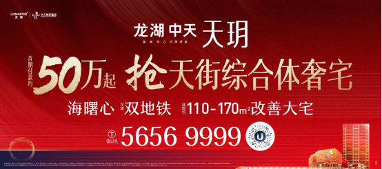 目前首期付款约50万起,抢天街综合体奢宅,低门槛入席天街奢宅的最后机会,正逐席递减!这样难得的天街TOD奢宅入手机遇,错过难再!