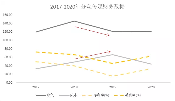 梯媒“内卷”,最后的结果自然是两败俱伤,双方都没有因此获得更多市场份额和收入,却在点位扩张和竞价中支付了更多的成本。2018年、2019年分众传媒毛利率连续下滑,新潮传媒更是两年亏损超10亿。