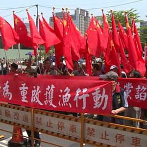中华统一促进党今天率数百人赴民进党中央抗议,谴责民进党当局对日本妥协,出卖渔民权益。