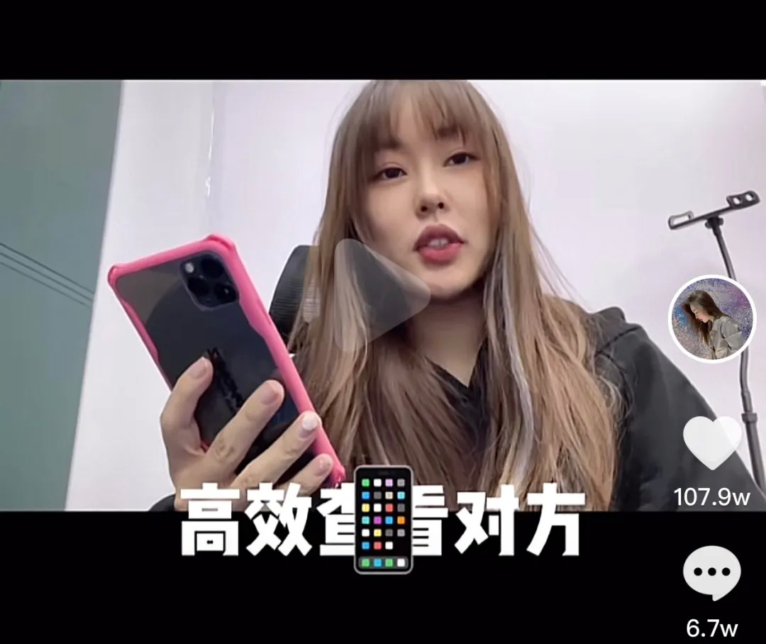 不过,相比高端一对一定制,绝大多数女孩还是喜欢在短视频白嫖经验。抖音博主“鄙人李洋洋”一条教女孩怎么查男生手机的视频点赞百万+。“你就把他手机拿过来搜‘干嘛’,出现聊天最多的前三名不管是男孩女孩,点进去在聊天记录里搜索‘女’,你将有新奇的发现。”