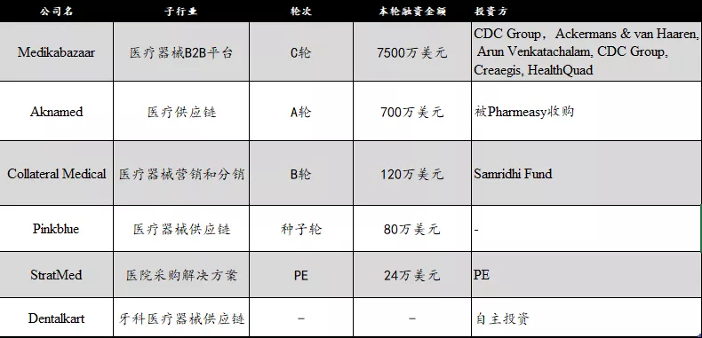 印度医疗器械线上平台融资(Source: Crunchbase)