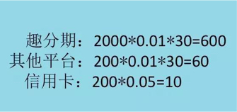 按照趣分期的算法,这个学生每天都收取总金额2000的1%,就是20元,一个月的金额就是600元。