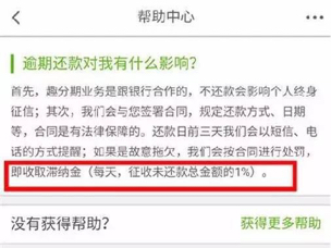 如尹某的情况出现,就是因为,趣分期滞纳金,每天按照未还金额的1%来收取。