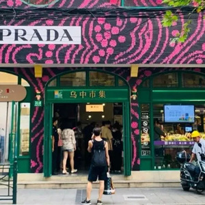今年9月底,奢侈品牌Prada与乌中市集跨界联名的快闪店正式开业。快闪店位于上海市徐汇区,为期14天。