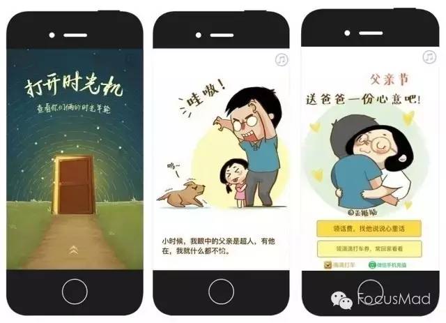 父亲节大多数品牌都会选择无比深情甚至走催泪路线。类似可口可口这种温馨陪伴型的还有温暖回忆型、时间对比型(儿女成长经历和父亲逐渐老去)、场景对话型(漫画、微信聊天)以及催泪煽情的视频等。在此,不逐一列举了。