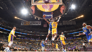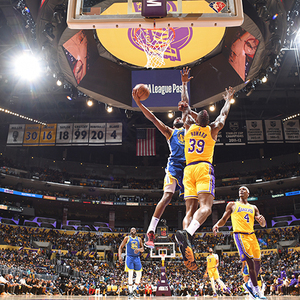 当天第二场揭幕战,由洛杉矶湖人对阵金州勇士,勇士队以121-114在客场取胜。