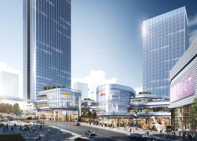 铂金岛以“天街一体铺”的新模式出现,与天街在同一地块内整体打造。作为商业建筑主体的南侧形象面,与天街通过多处扶梯、电梯、连廊、入口相连,与天街共筑活力街区。