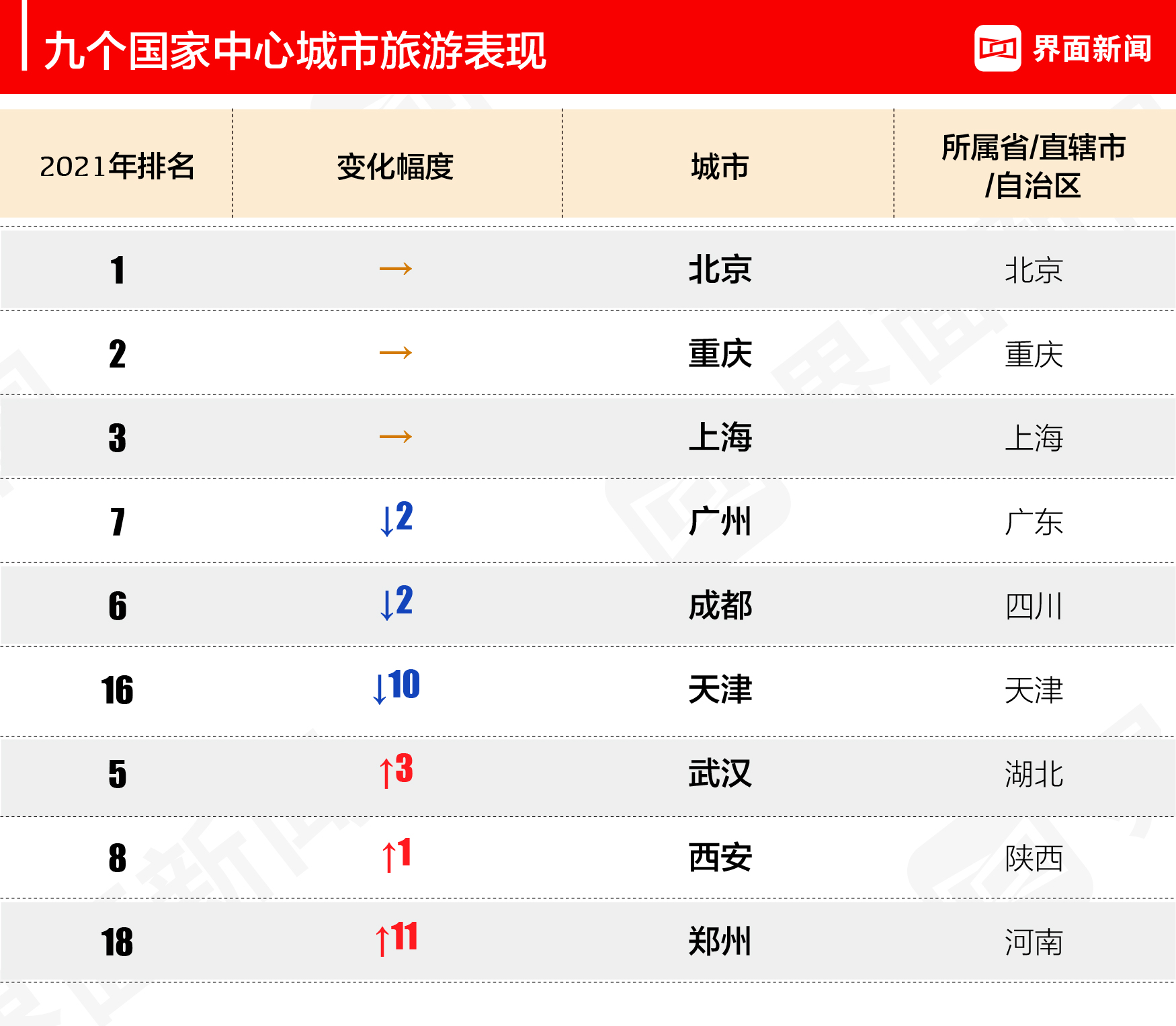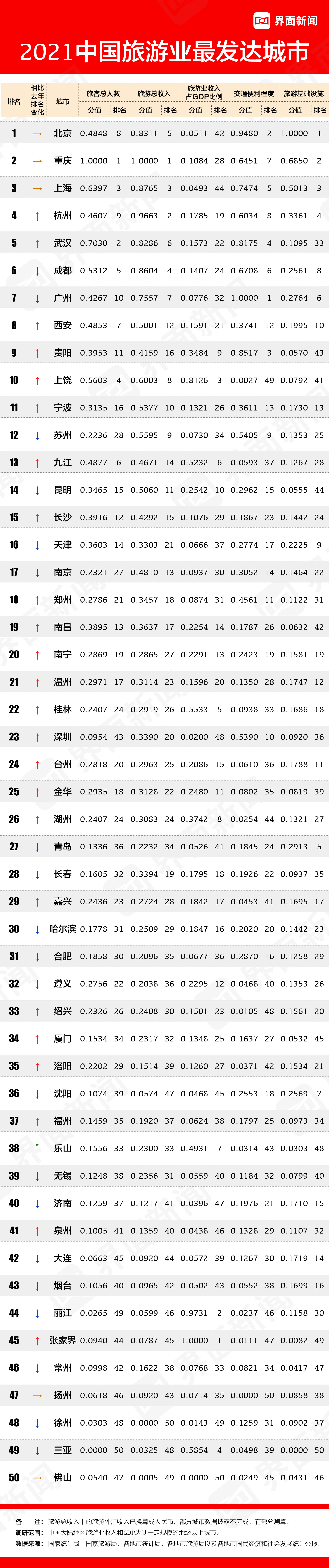 界面新闻2021年中国旅游城市榜今日发布,这是一份揭示中国大陆城市旅游业实力的榜单。优质的旅行计划离不开目的地的选择,希望此榜单能为您的出行提供一份参考。