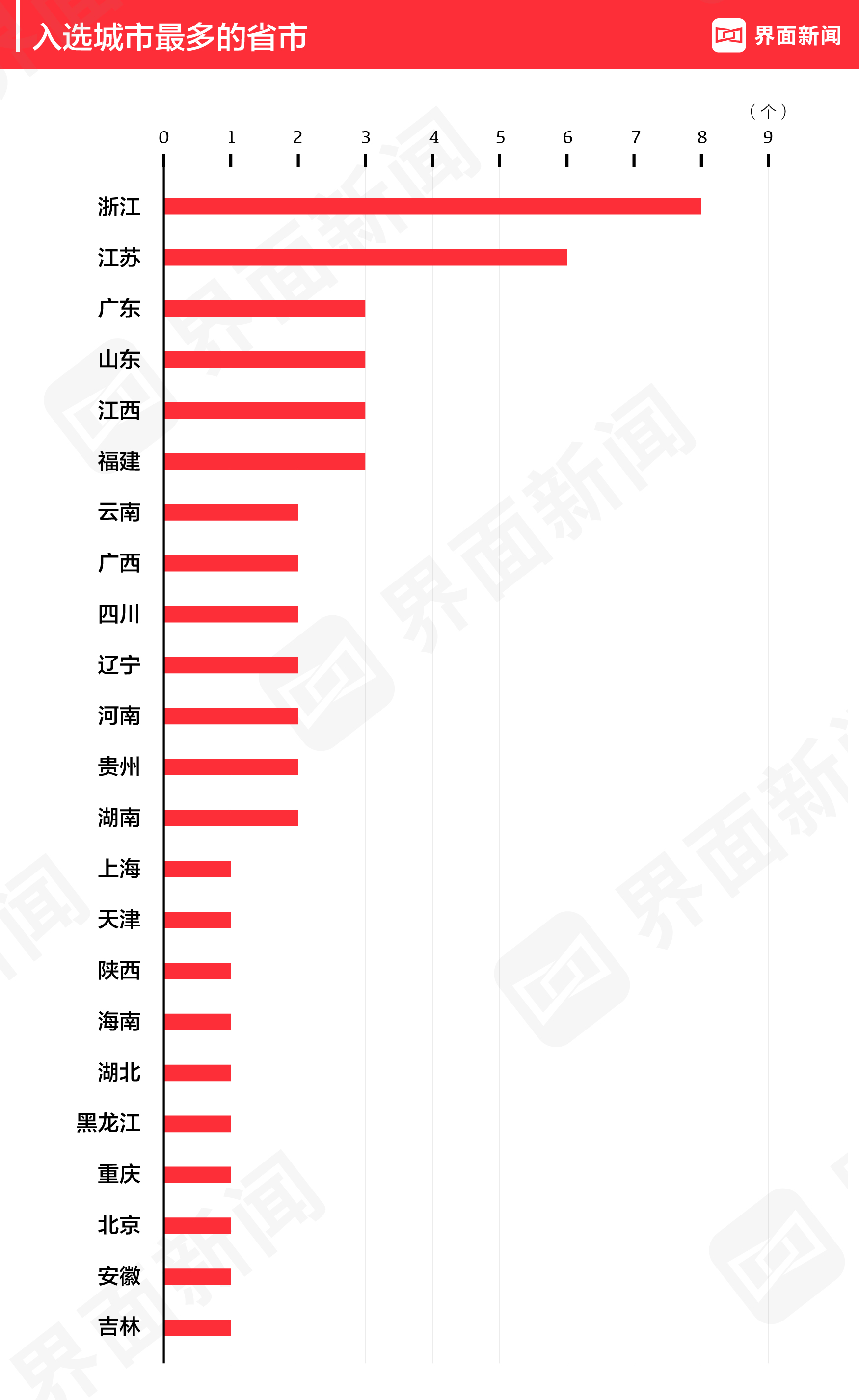 从数量上看,浙江省依然有8个城市上榜,分别是杭州、湖州、嘉兴、金华、宁波、绍兴、台州和温州。江苏省有6个城市上榜,常州、南京、苏州、无锡、徐州和扬州。广东省、山东省、江西省和福建省各有三个城市上榜。