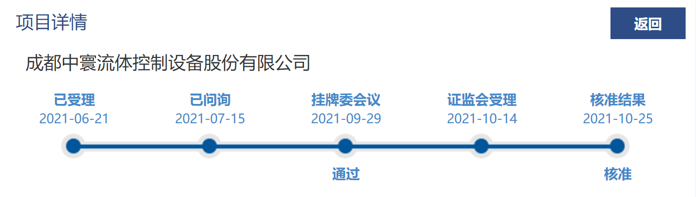 6月受理的中寰股份(836260.NQ)精选层公开发行,终获挂牌委的通过,并于10月26日收到证监会下发的《关于核准成都中寰流体控制设备股份有限公司向不特定合格投资者公开发行股票的批复》,核准公司向不特定合格投资者公开发行不超过977.5万股新股(含行使超额配售选择权所发新股),该批复自核准发行之日起12个月内有效。