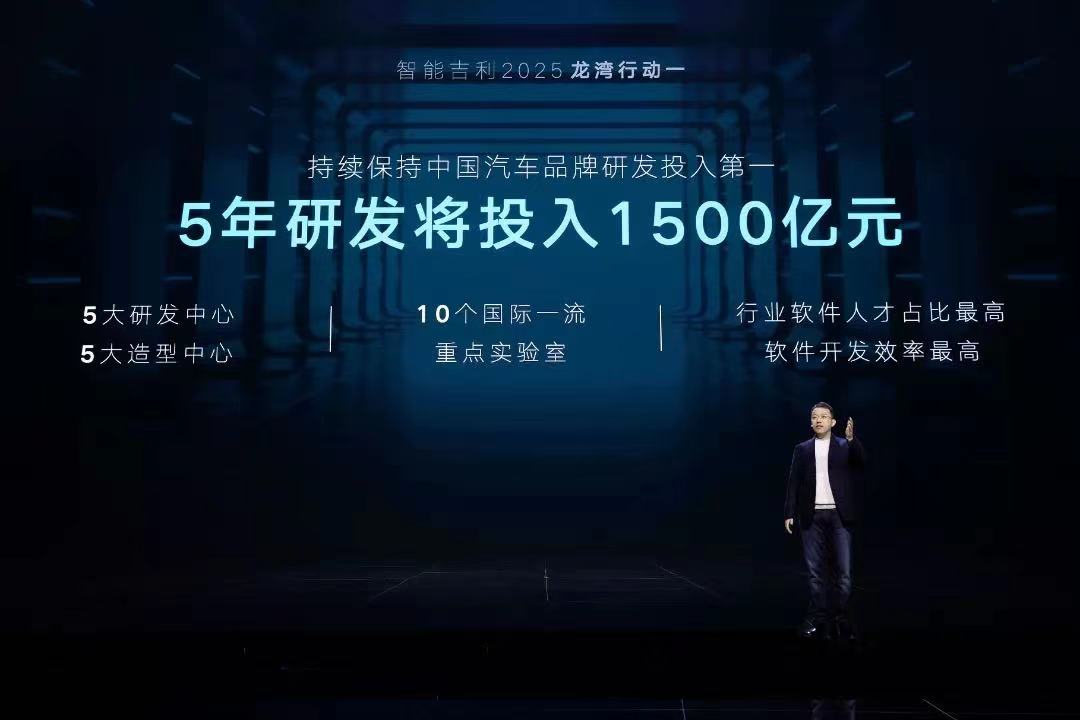 龙湾行动一:吉利将持续保持中国汽车品牌研发投入第一,5年内研发将投入1500亿元。到2025年,实现行业软件人才占比最高,软件开发效率最高。