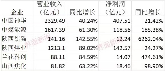 其他煤炭企业的业绩也表现突出。