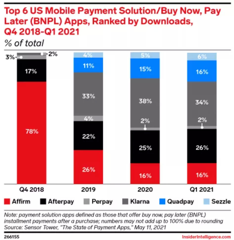 Klarna是这三者中成立最早的公司,在全球 BNPL 的市场份额名列前二,仅次于老牌支付霸主PayPal。