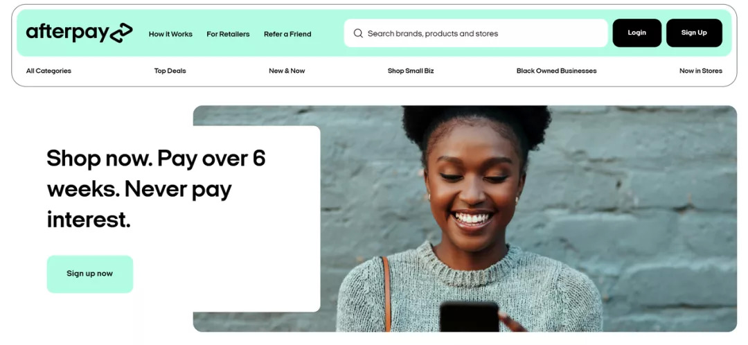 如果你现在打开Afterrpay的官网,你可能很难相信这是一家消费者金融公司。和上述两家公司相比,Afterpay的官网可太潮了。这也与Afterpay垂直于时尚美妆领域有关。
