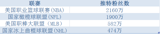 在北美四大运动中,篮球最大的区别,就是它的全球吸引力。至少,推特数据说明了这一点。以下是四大职业联赛的推特粉丝数: