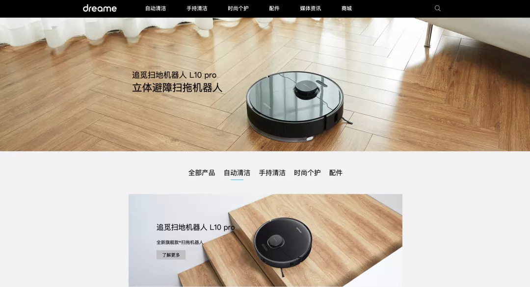 在追觅官网的产品展示页,排在第一位的已经不是它业界领先的无线吸尘器,而是扫地机器人了。