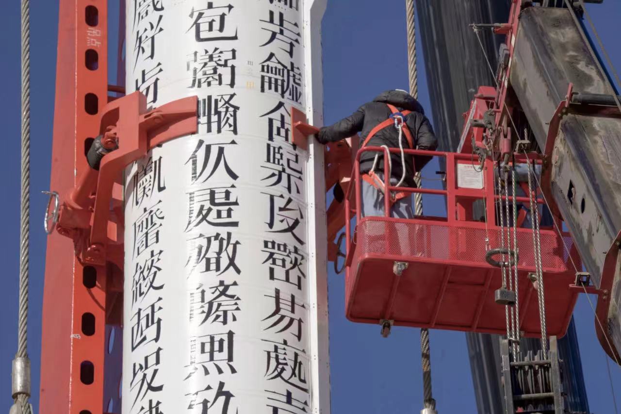 “卡门线”被认为是外太空与地球大气层的分界线。在这个展览中,艺术家徐冰打造了一个太空艺术现场,他将其代表作《天书》中的基本元素印在一枚火箭箭体表面,以“徐冰天书号”命名,并于2021年2月1日在中国酒泉发射了这枚火箭。“徐冰天书号”安装了一个5.5cm立方体的“天书魔方”,按计划卫星将传回魔方在外太空的即时影像。子级箭在完成推进任务后与载荷舱分离,回落地表,这些《天书》文字也随着火箭经历了上天入地的过程。