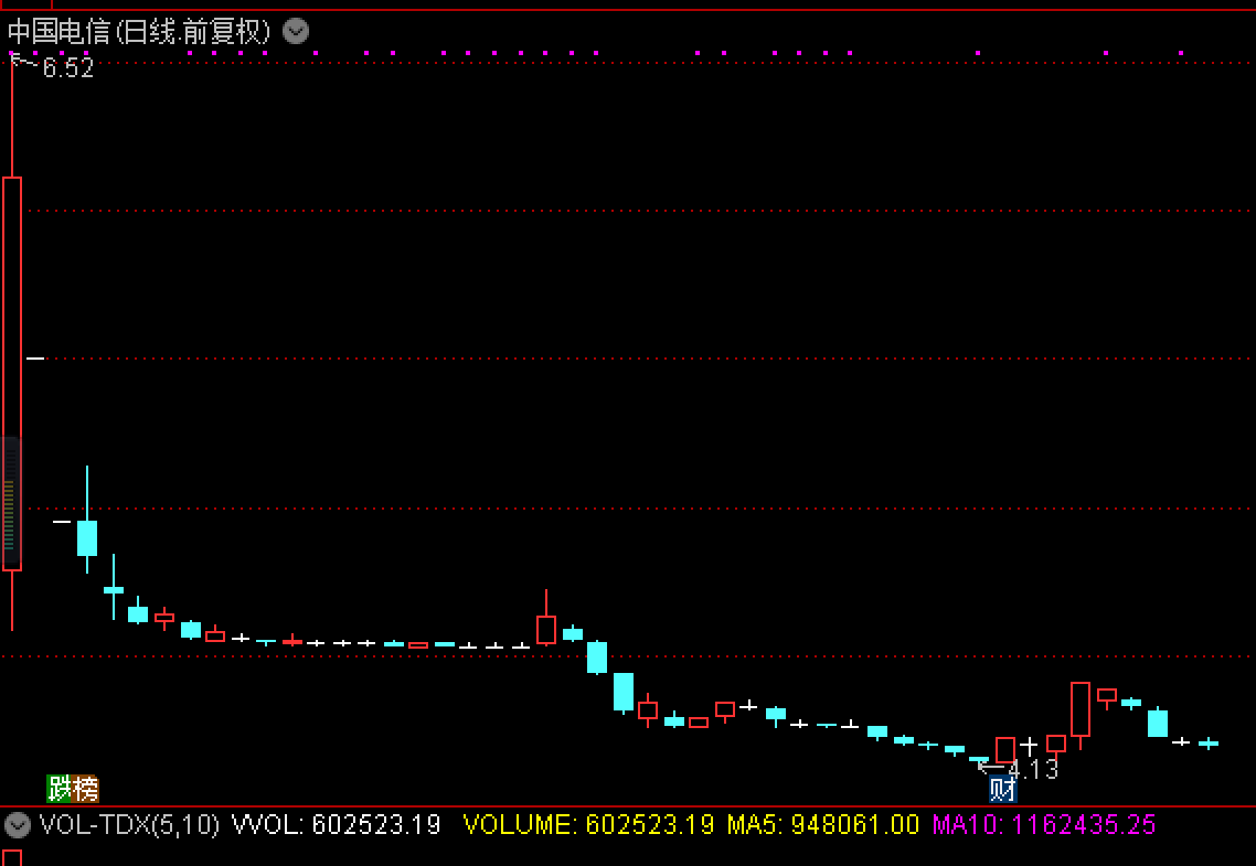 在中国移动之前,中国电信(601728.SH)才刚刚于8月20日登陆A股。首秀就贡献了34.88%的涨幅,换手率达67.14%。不过好景不长,没几天,中国电信的股价便跌落到4.53元发行价附近,而绿鞋机制也随即启动。但遗憾的是,最终中国电信还是破发了,截至11月4日收盘时,中国电信的股价为4.19元。