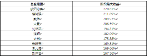 (2015年基金经理阶段最大收益前十)