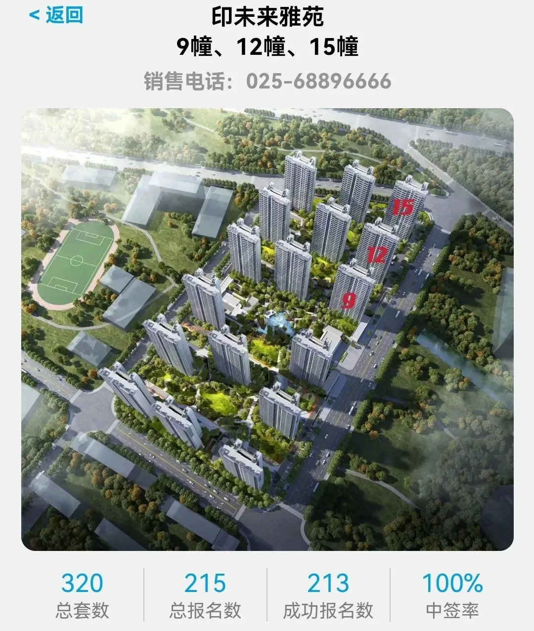 目前项目已报名结束,根据宁小通显示,总报名人数共213人成功报名,并未超过入市房源数量,初步综合中签率为100%,无需摇号。