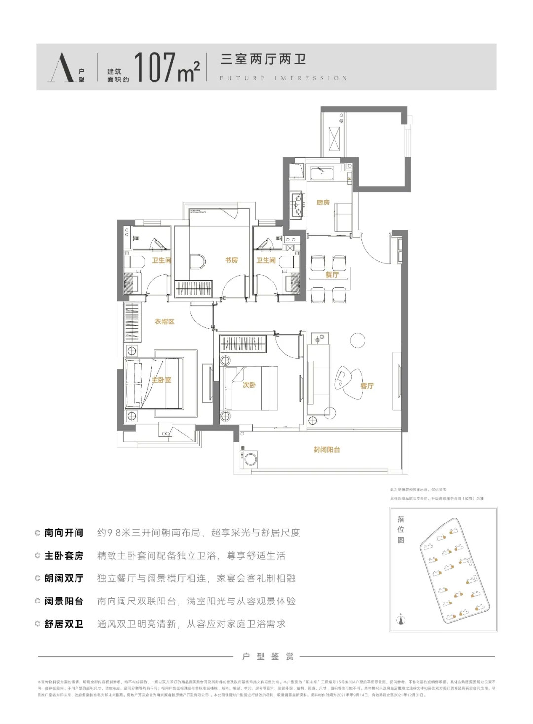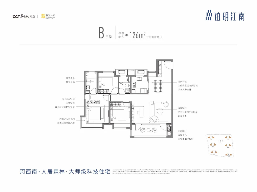 项目拟建18栋28-33F高层住宅、9栋低层配套商业及配套用房。据置业透露,项目本月下旬将公开示范区,预计年内首开约600套,户型建筑面积约110、140、170㎡,毛坯限价38500元/㎡,户型建筑面积约108、143、171㎡,目前,项目已在华采天地和雨花客厅公开城市展厅。