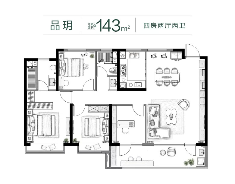 项目主力户型只有两种,都是双阳台设计,整体定位注重改善,其中118㎡三房两厅两卫,全部是中间户;143㎡四房两厅两卫,为东西边户。