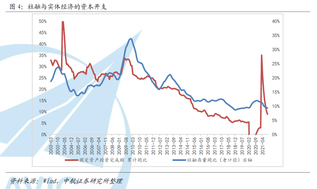 主动紧信用周期:基于政策的指引和自身行业的经营判断,社融下降过程中,实体经济活动主动降温,企业资本开支意愿下降(图4),在保证经营可持续的前提下资产负债表收缩。通常情况下,这样的过程伴随着信用利差同步收敛,意味着实体经济对金融机构的信用需求减弱,信用利差下降与资本开支、经营活动降温相对应。社融与信用利差的同步降低代表的是货币的收敛和信用风险的淡化。在这样的组合下,超额流动性退去,又没有明显的信用风险冲击风险偏好,市场交易热情逐渐降温,波动率下降。