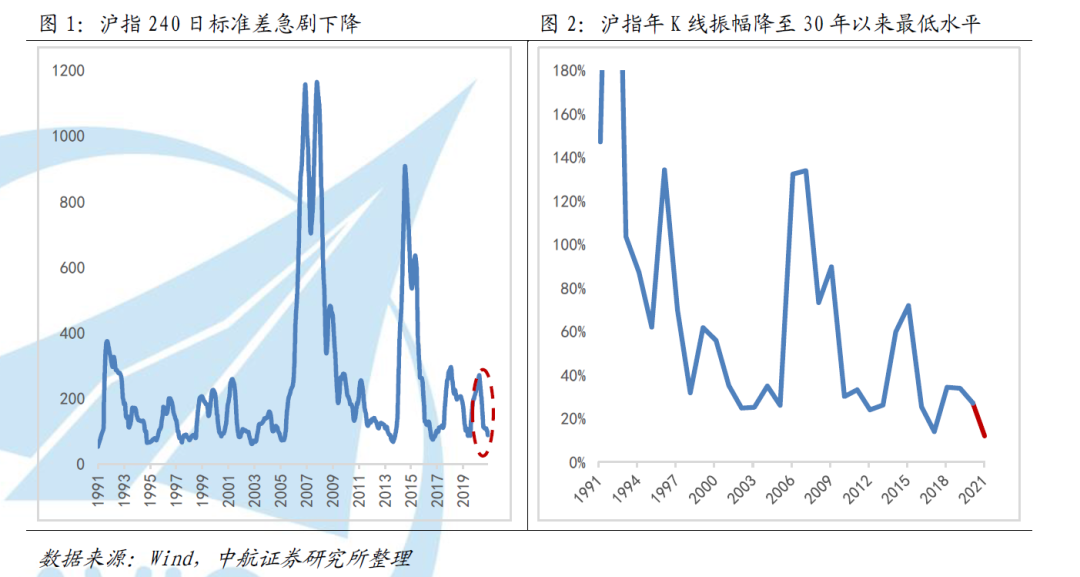 一、 2021年沪指振幅降至30年以来最低水平