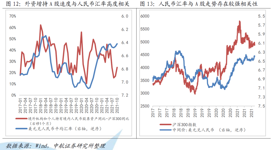 人民币汇率走势与外资增量变化存在较为明显的相关性:人民币升值与外资加速流入A股的时间线吻合,人民币承压可能导致外资流入放缓。外资是A股重要的增量资金:加速国际化以来,A股每一次向上突破都需要人民币升值配合。