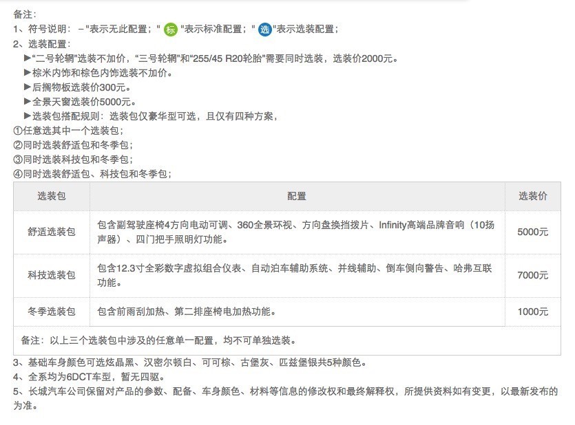 哈弗H7选装配置一览表