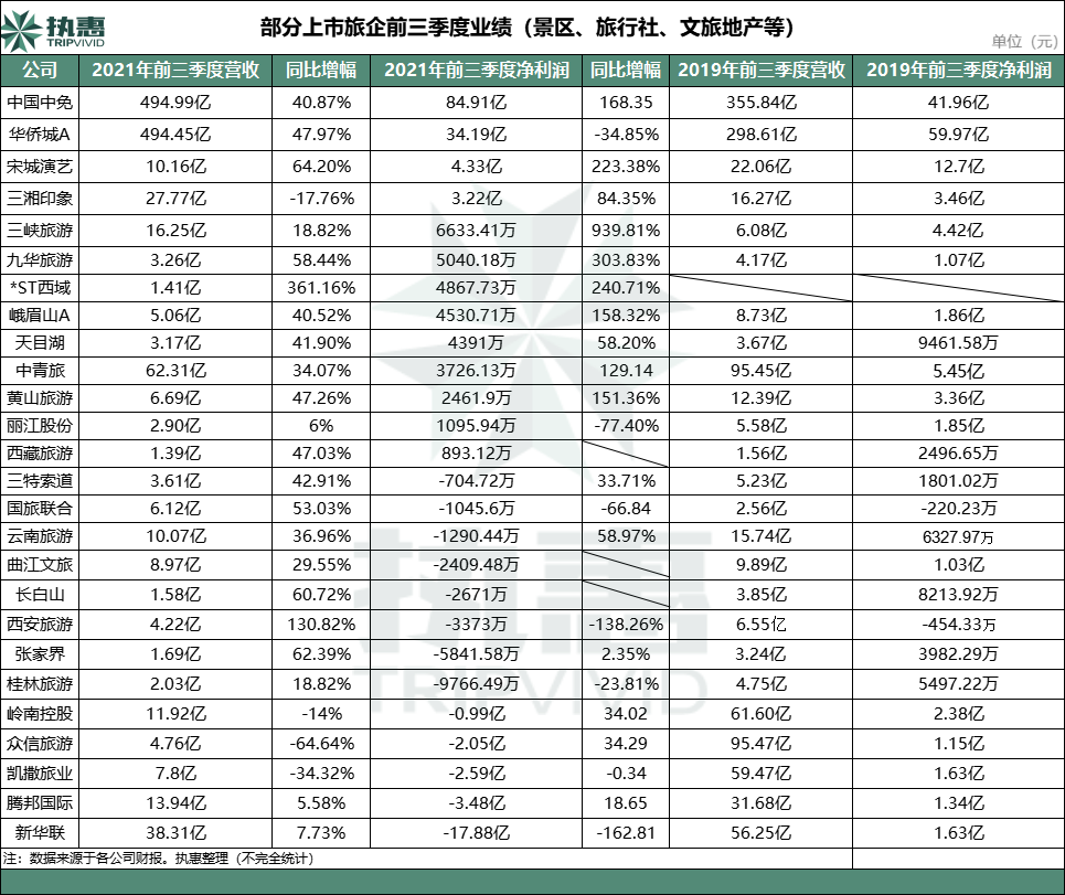 上市旅企三季报,有盈有亏。