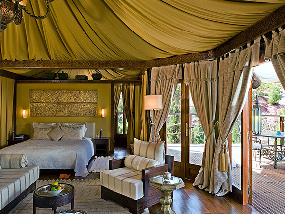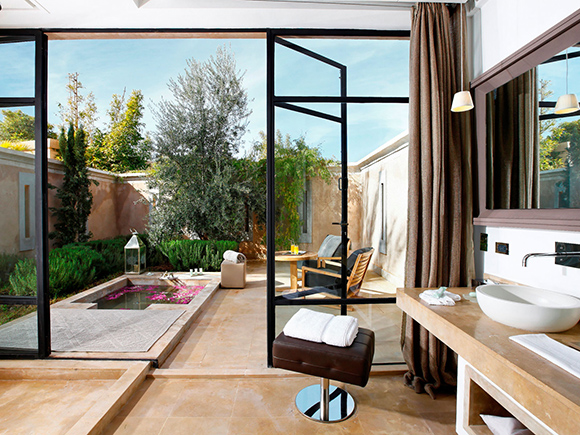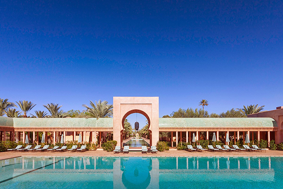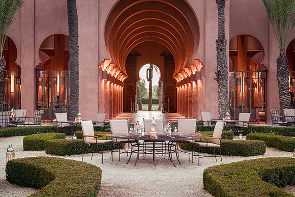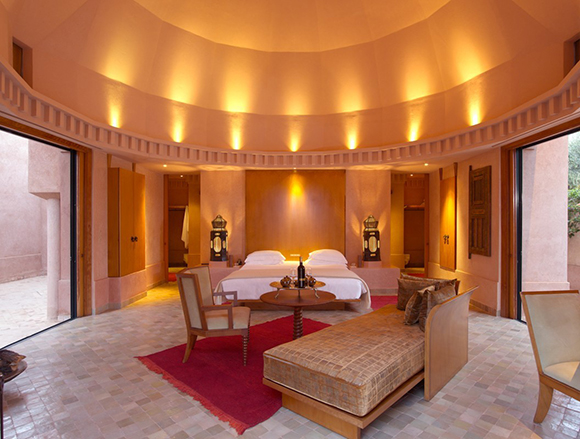 酒店的花园和草地就如同沙漠中的绿洲,你还能享受到在城市中度假的感觉。这里还有让人非常惊喜的细节。你可以烧起房间里的壁炉,炉子中噼啪作响的温暖感觉就像是被撒哈拉沙漠的沙子轻轻包裹;漫步在棕榈树林中,有兴趣的话还可以学习一下这个地区灌溉系统的相关知识;睡在刺绣亚麻布上的感觉简直像在天堂;还可以带上一瓶美酒,跑到这座城市的外边,伴着夕阳,看着绝美的阿特拉斯山畅饮。