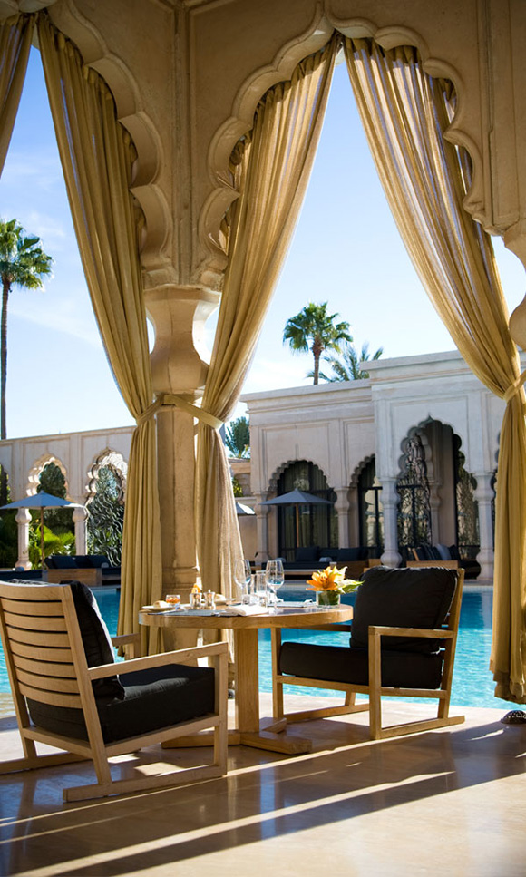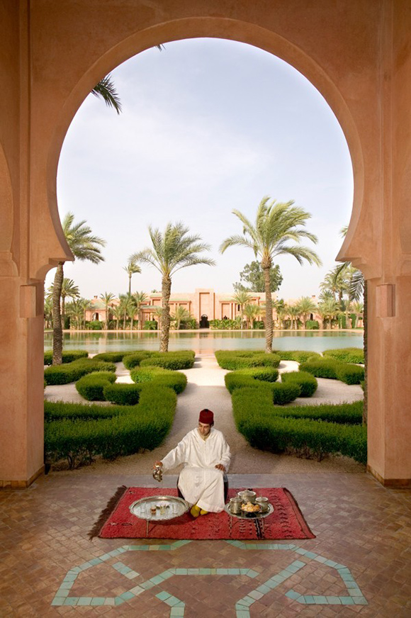 穿过又窄又暗的马拉喀什旧城,和无数的骆驼群与棕榈树,来到位于马拉喀什旧城外围的安缦杰纳,你会突然相信,人们说的《天方夜谭》里的神奇之域就是这里。至少,安缦杰纳确实是一个天堂般的神奇存在。