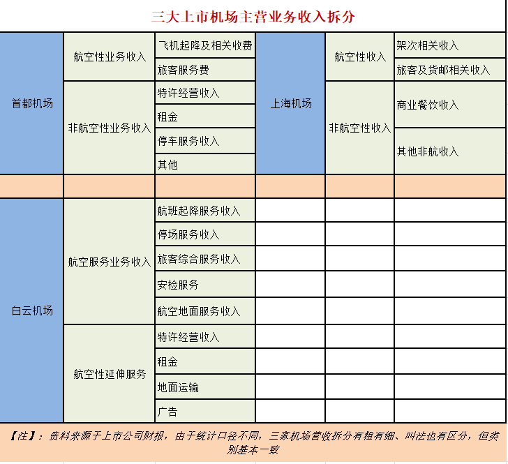 前两者划归为航空性业务,后者称为非航空性业务,航空性业务属于机场传统性基础性业务,与之相挂钩的生产数据是——飞机起降架次、旅客吞吐量、货邮吞吐量。
