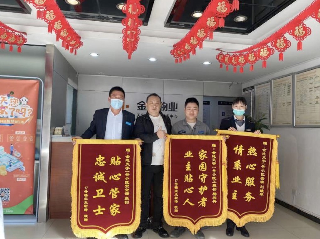 本以为这只是日常工作中的一件小事,却被业主用心记了下来。没过两天,这位业主亲自上门,将三面锦旗送到了物业工作人员的手中。感动之余,更多的是对自己工作的自豪感和工作被认可的获得感,物业管家说:“想业主所想,急业主所急,一直以来都是我们工作中的理念,我们给自己的定位不是管理,而是用心服务,将业主当做自己的家人和朋友看待,自然也会受到业主的认可。”