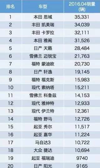 另一点改变美国人思路的是日本,日本人强大的产品基因改造了原有的美国车,我们看看今年第一季度美国销量前20榜,前5名无一例外的全是日本车。与欧洲车的那一套性格不同,日本车给到的感觉是轻盈,舒适,有时甚至能到达某种无欲无求的东方境界。