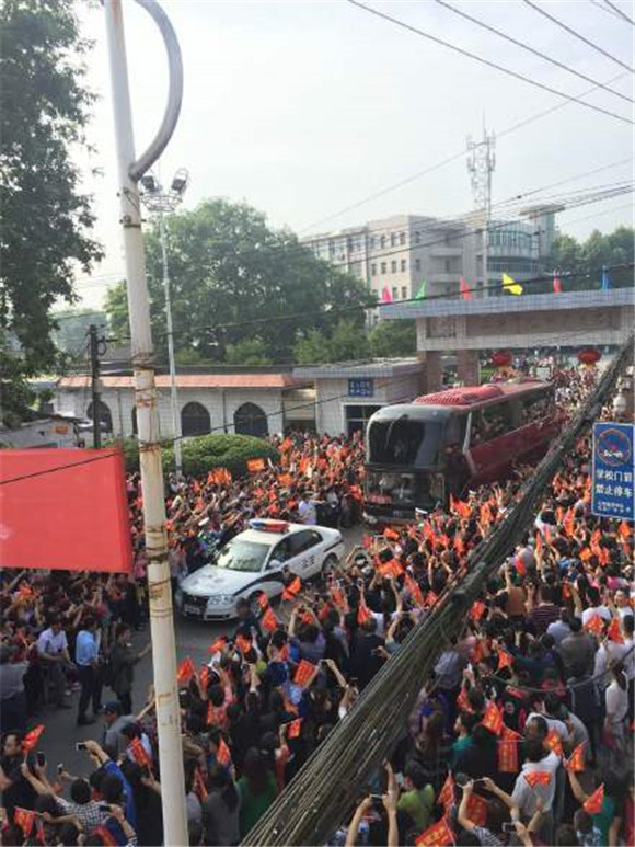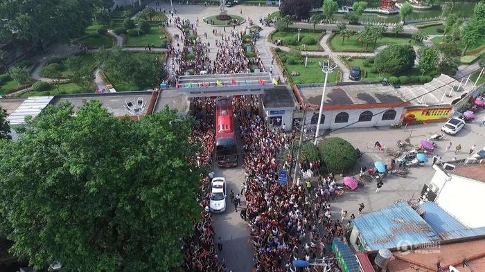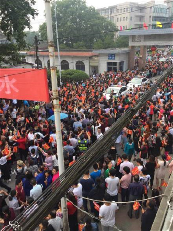 3. 与往年不同的是,今年送考之前,数千名外地前来借读、复读的考生已经陆续提前返回原籍地参加高考。现场,周边群众和大量高一、高二的学生家长聚集在中学大门前的小街两侧,例行夹道欢迎之礼,欢送千余名本地考生奔赴六安参加高考。