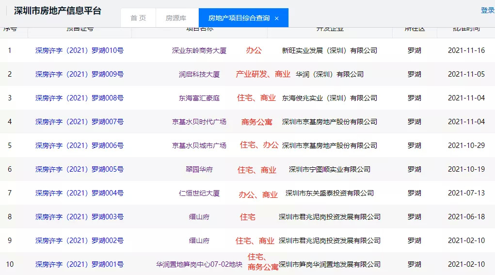 根据深圳市房地产信息平台数据,截至今日,罗湖共有10盘备案入市,而住宅只占6个,其中还包括分两批入市的缙山府。