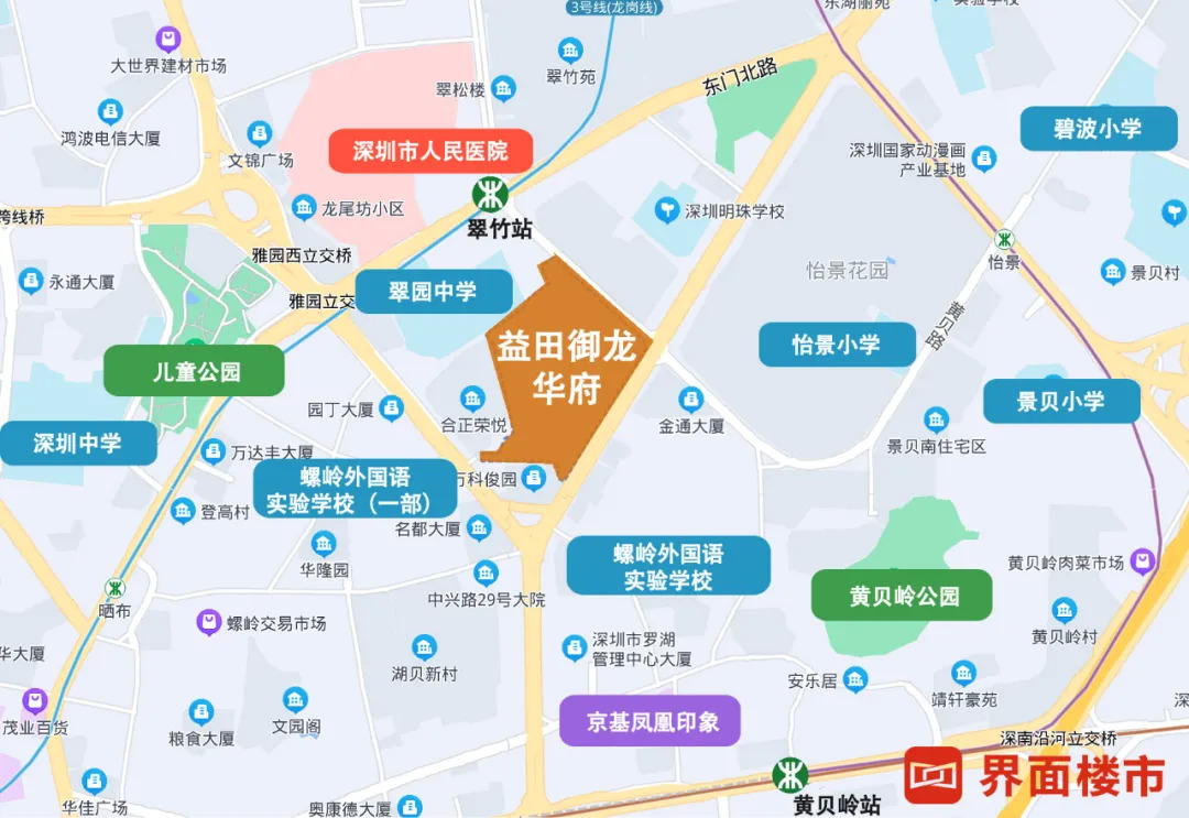 除了交通,周边的教育资源也很丰富,有翠园中学、螺岭外国语实验学校、怡景小学、深圳中学等学校,就近入学不成问题。