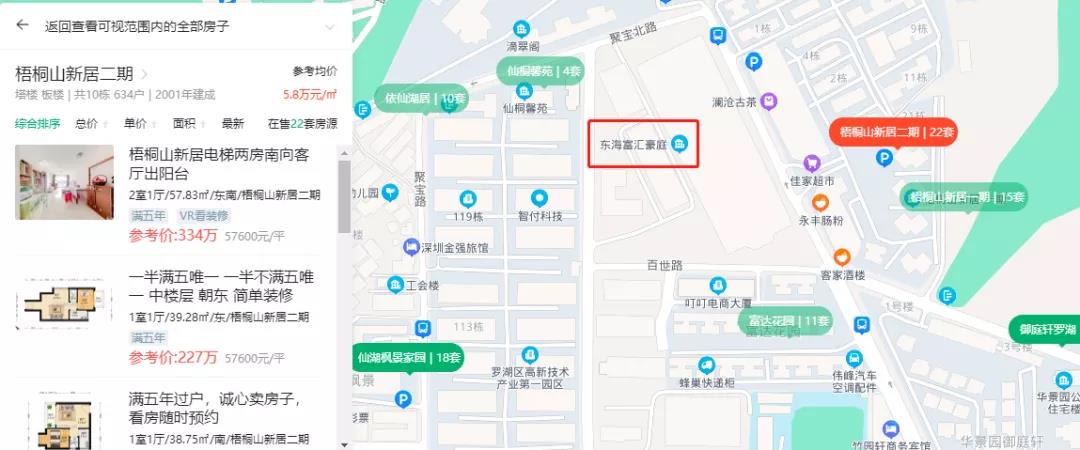 目前项目隔壁小区梧桐山新居的二手房指导价仅为5.8万元/平方米。