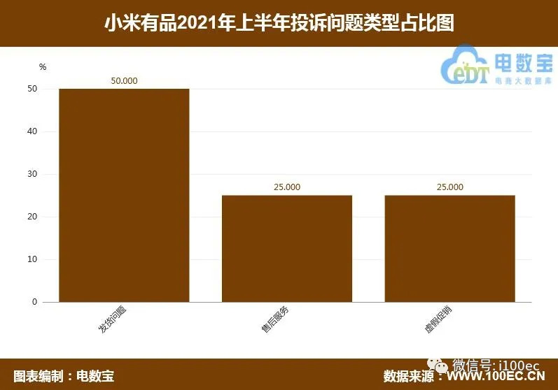 据国内知名网络消费纠纷调解平台“电诉宝”(315.100EC.CN)显示,“小米有品”涉嫌存在发货问题、售后服务、虚假促销等问题。