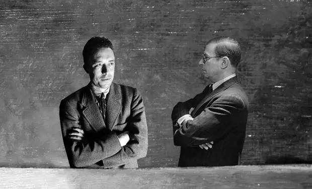 加缪与萨特,两人曾是密友,最终因政治上的分歧彻底决裂