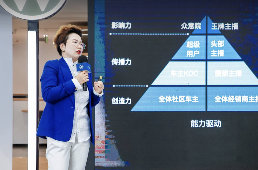 汤旭静还告诉界面记者,上汽大众已经发现,以前拍个TVC可以全平台分发,现在行不通。抖音上播放量很大的视频B站网友普遍不买账,必须要根据平台定制内容。因此内容必须多元化、碎片化。这光靠品牌自己是扛不住的,必须要有足够多的KOC进行内容共创。预计明年,上汽大众将矩阵化推进全网大部分经销商,打造1万名车主KOC,一起做内容共创,打造超级用户,成立专门的“众意院”,再找越来越多跟各类平台,以及和越来越多KOC进行合作。