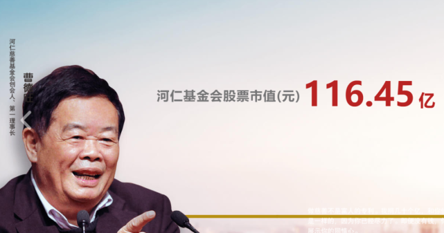 基金会名称“河仁慈善基金会”取自曹德旺父亲之名“曹河仁”。根据官网消息,尽管基金会已经减持了不少福耀玻璃股票,但最新持股市值仍有116.45亿元。