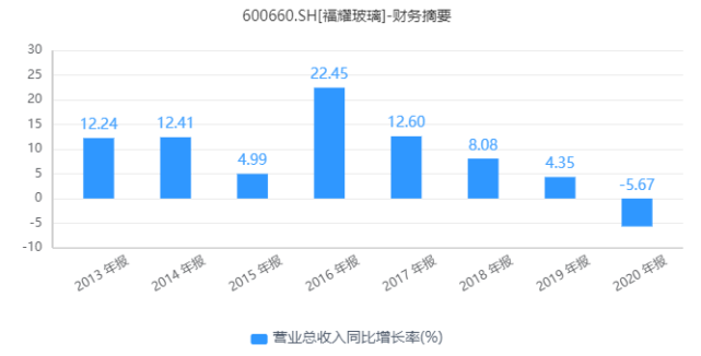受此影响,福耀玻璃的营业收入增长率也从2017年起开始走低,到了2020年历史上首次出现负增长,当年实现营收约199.07亿元,同比减少5.67%。