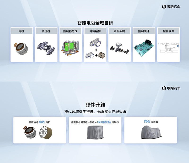 同时,稍早前零跑汽车推出的高压油冷扁线电机、SiC碳化硅控制器、两档变速器正在有序开发中,持续提升性能指标。